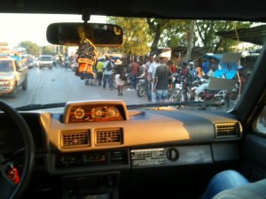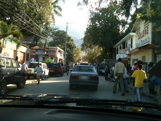 During the 3-hour+ ride to and from Port Au Prince to Les Cayes we passed through several towns. In the morning it was the most darling sight to see all the children on their way to school walking, on the back of tap taps, on the backs or fronts of their dads motorcycles or on the backs of donkeys. Interestingly, there were different groups of girls whose big green, yellow, rust, red, brown ribbons and barretts matched their uniforms. It was the cutest thing to see. UNICEF donated branded backpacks so you almost every child you see is wearing a backpack in the rural area.